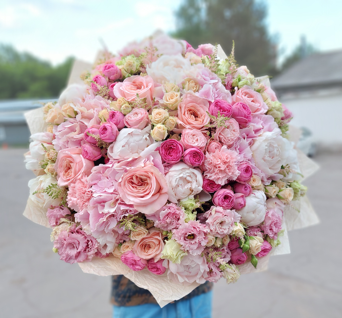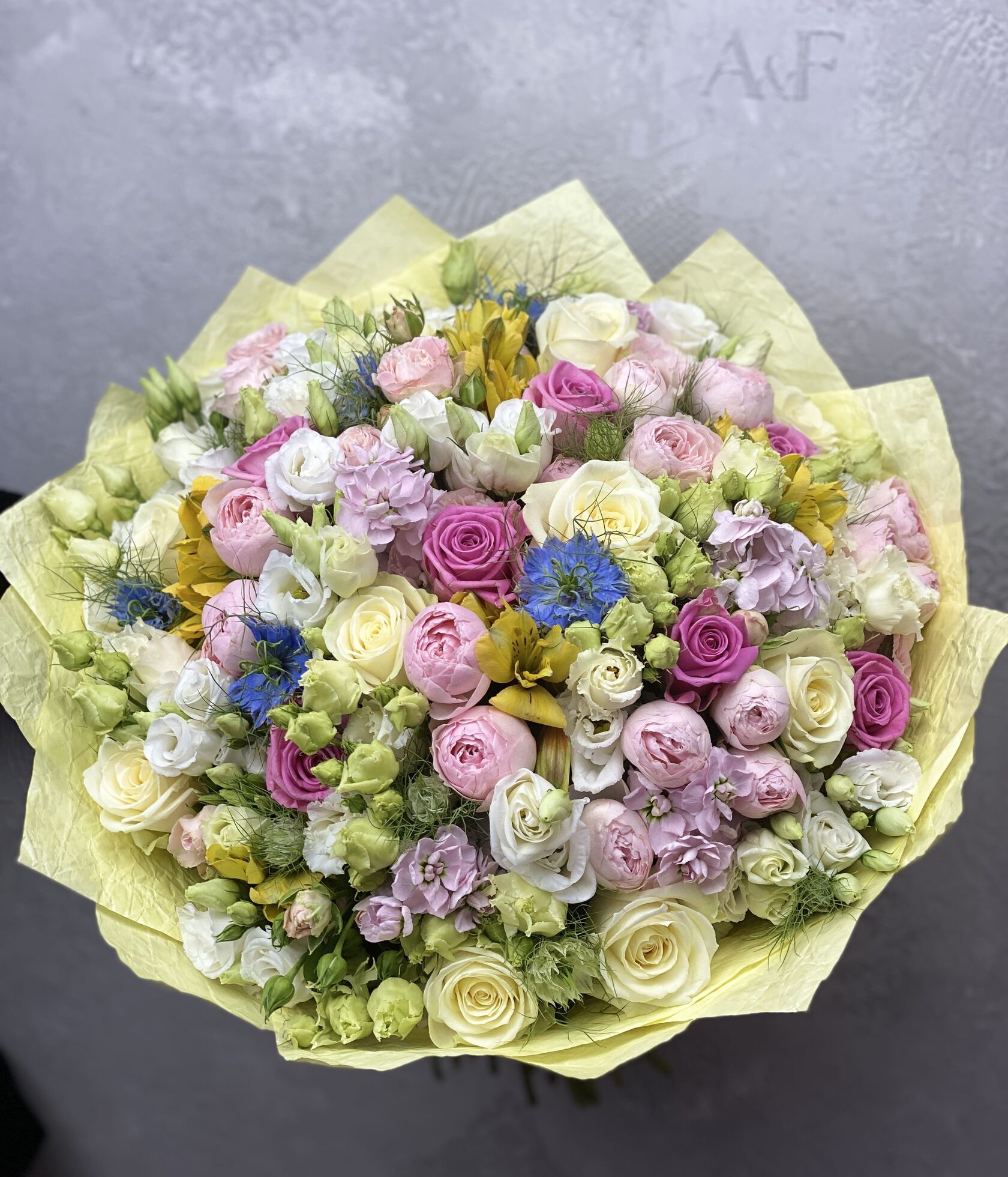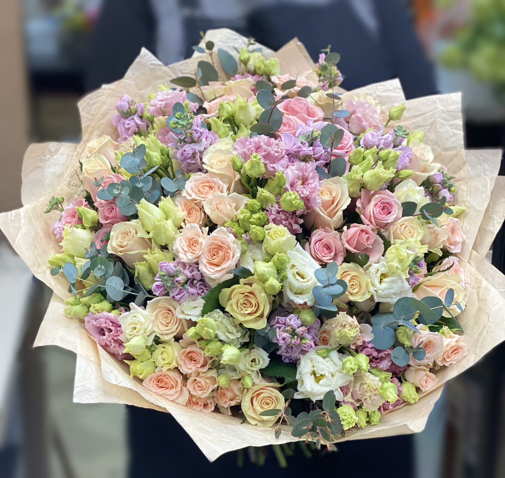 Летний и свежий микс из ароматной маттиолы, лизиантуса и пионов Etched Salmon для хорошего настроения.